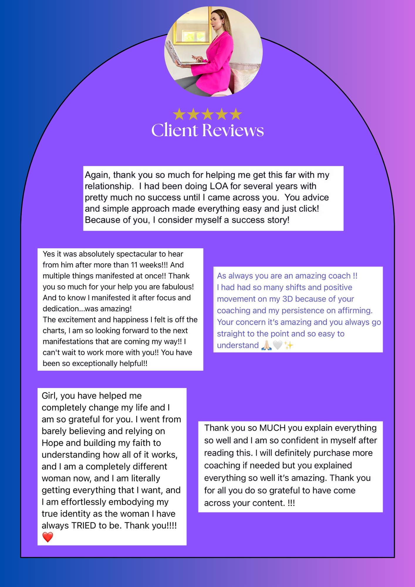 Please refer to my Instagram (@loacoaching) for a full list of client reviews and feedback.